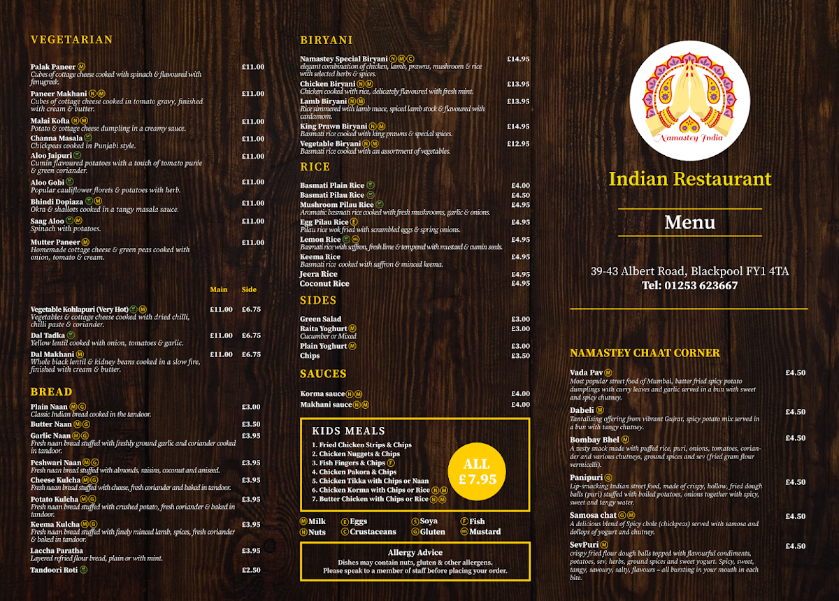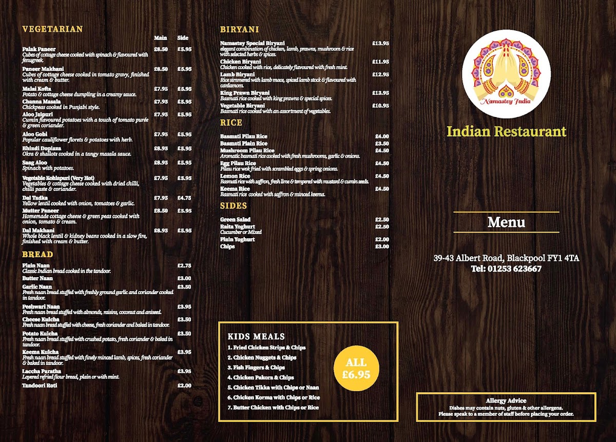 The Namastey India menu boasts a wide variety of dishes, from spicy curries to flavorful grilled meats. Start your meal with an appetizer like the onion bhaji, crispy and seasoned to perfection, or indulge in the samosas, stuffed with a savory filling that delivers the perfect crunch. For the main course, the lamb rogan josh is a standout - tender, slow-cooked lamb bathed in a rich, aromatic sauce, paired excellently with naan or pilau rice.