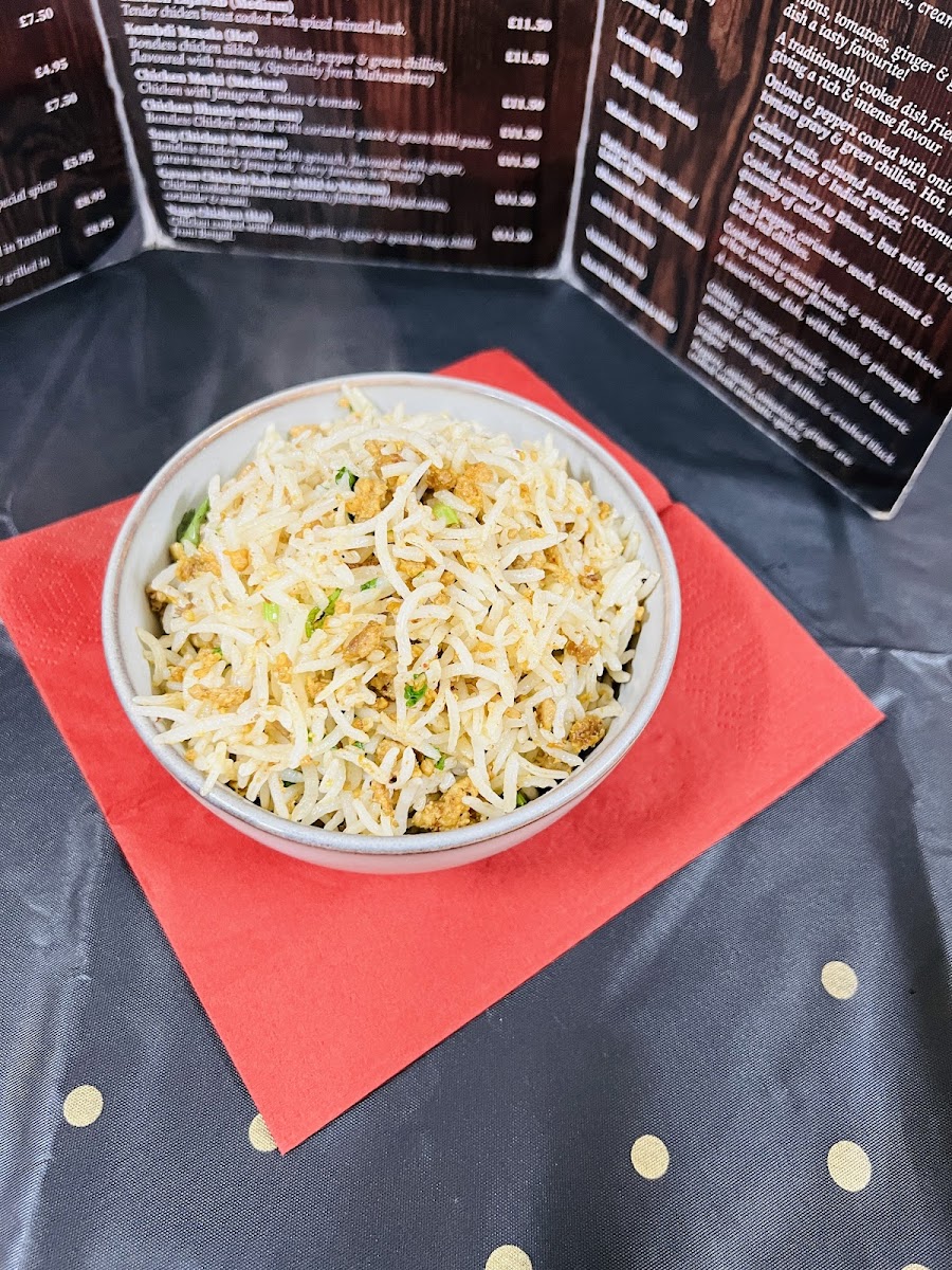 Pilau rice wok fried with scrambled eggs & spring onions.